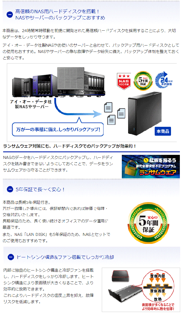 ■「LAN DISK」のバックアップにおすすめ!長期5年保証&高信頼HDD搭載で安心