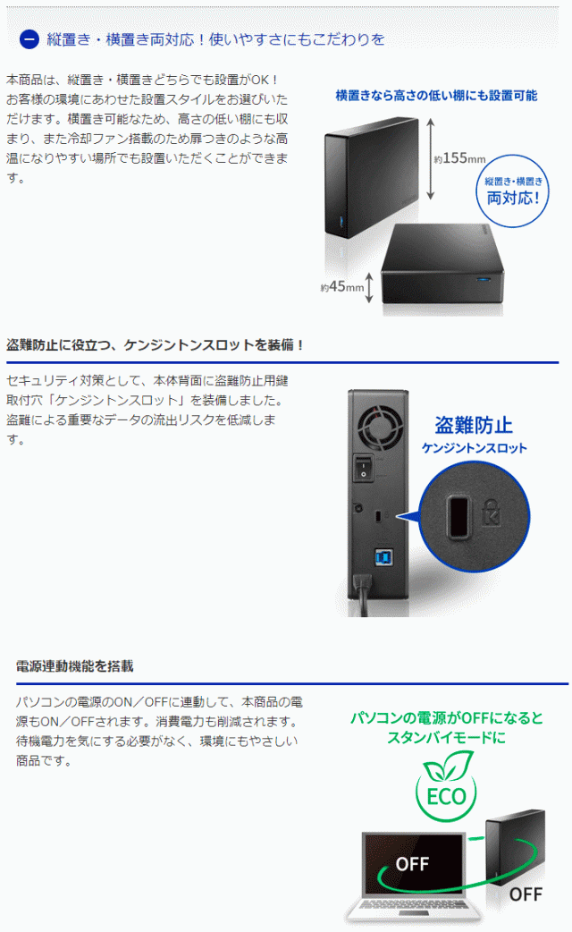 | LAN DISKバックアップ用 USB 3.2 Gen 1対応 外付けHDD 6TB 法人向け 5年保証 HDJA-UTN6/LDB スペック情報 | |