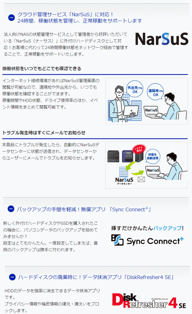 | 対応機種 | アイ・オー・データ社製NAS「LAN DISK」、Windowsパソコン、Chromebook |