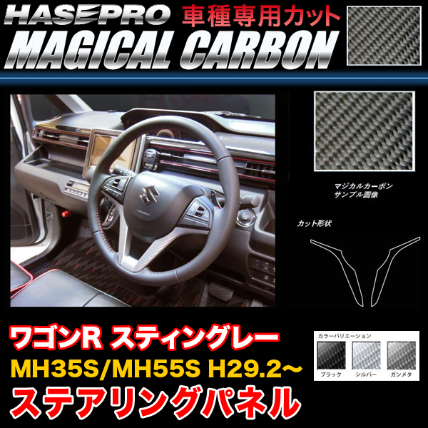 ハセプロ ワゴンR スティングレー MH35/MH55 H29.2〜 マジカルカーボン ステアリングパネル カーボンシート ブラック ガンメタ シルバー
