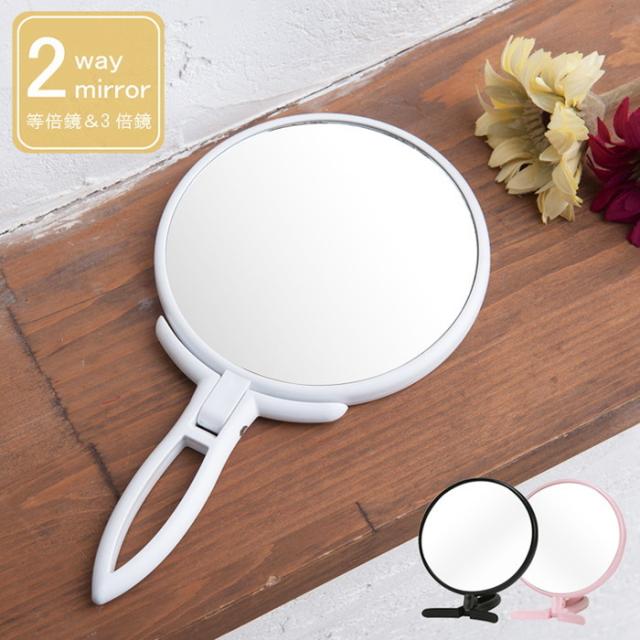 ミラー 卓上としても使える 2WAYミラー 手鏡 BALLOON 3倍鏡 拡大鏡 丸型 飛散防止 角度調整 メイク 完成品 nag-nk-295 店舗 カフェ ラウンジ ロビー ホテル 法人 卓上ミラー 鏡 送料無料 北欧 モダン 家具 インテリア ナチュラル テイスト 新生活 オススメ おしゃれ 後払い