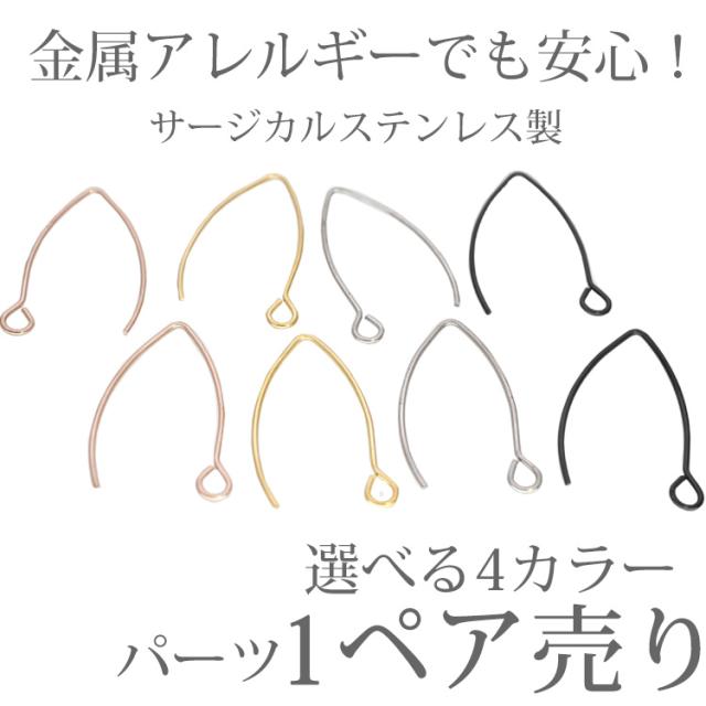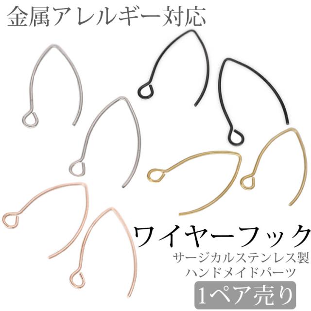 金属アレルギー対応 アクセサリーパーツ ピアス用金具 ワイヤーフックピアス金具 ワイヤーフック バネ付き ハンドメイド 手芸 パーツ サージカルステンレス
