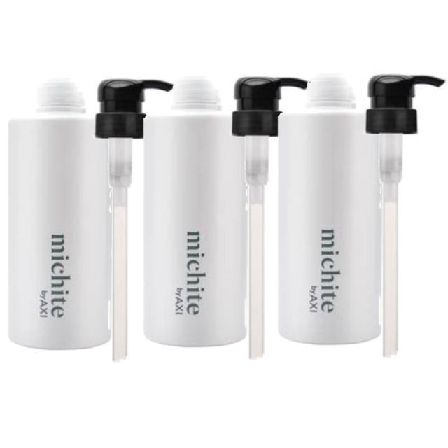 クオレ michite by AXI 詰替え用ボトル+ポンプ (シャンプー500ml、トリートメント500g共通) (ポンプカラーBK)【3個セット】