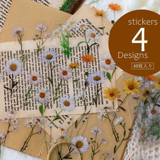 シール フレークシール 40枚入り ステッカー 草花 野花 ボタニカル リーフ グリーン 押し花 フラワー DIY デコ ラッピ