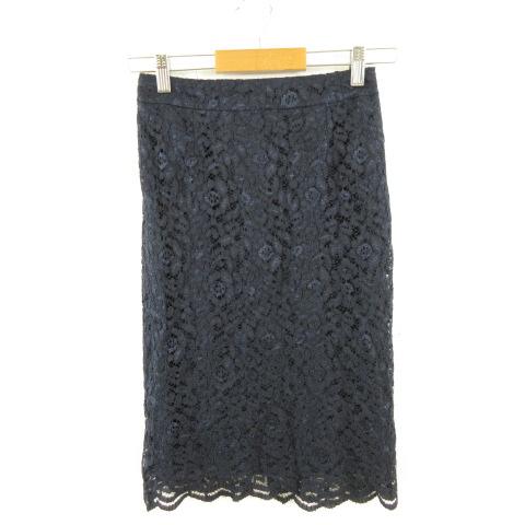 【中古】トゥエルブアジェンダ 12Twelve Agenda タイトスカート レース ひざ丈 紺 38 *A622 レディース