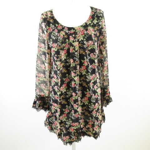 【中古】オゾック OZOC ワンピース ミニ 七分袖 花柄 黒 36 *T681 レディース