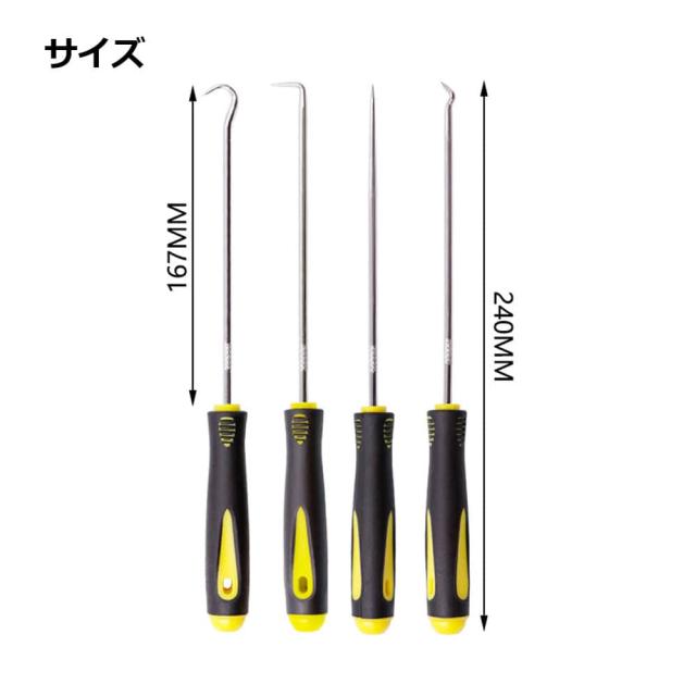 フック 4本セット ツール 工具 ピック ロングタイプ 便利 コンパクト ホース取り外し 車 カー用品 メンテンンス Oリングフック