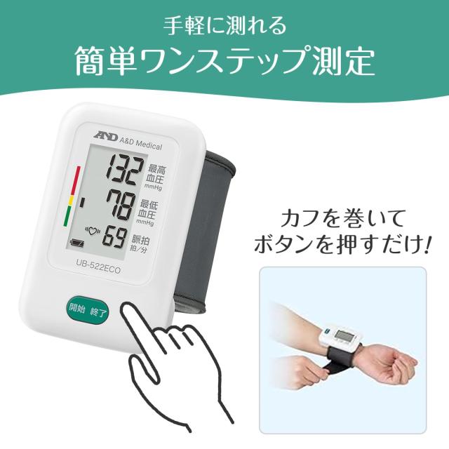 A&D エー・アンド・デイ 手首式血圧計 UB-522ECO 簡単ワンボタン操作 メーカー一年保証 シンプル操作 血圧計