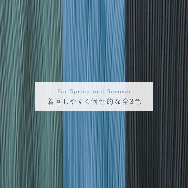 生地の表面に凹凸感があり、肌ざわりのさらっとしたプリーツ生地を使用しているので、夏の汗ばむ季節も快適に着用いただけます。
