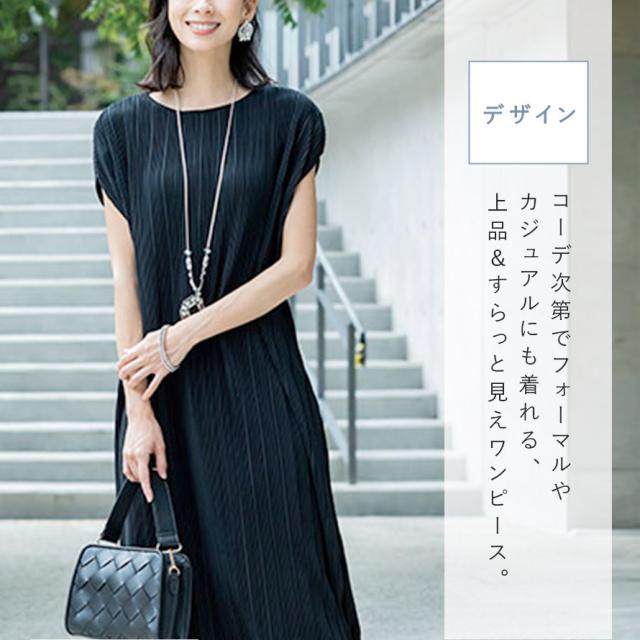 ボトムスを合わせたり、靴の合わせ方次第で、通勤にもお出かけにも使える、上品&すらっと見えるワンピースです。