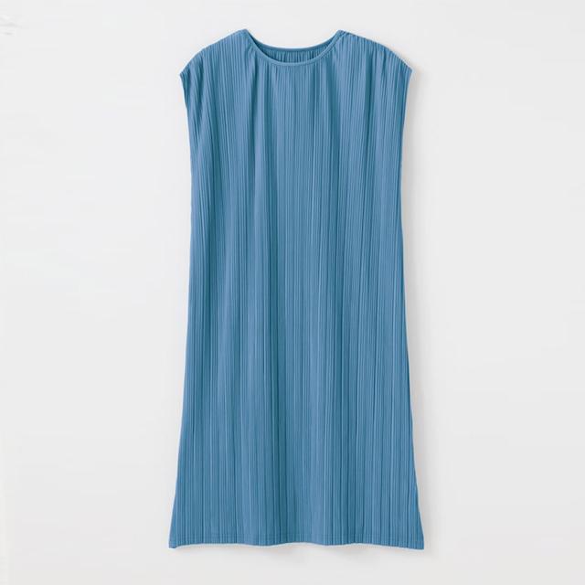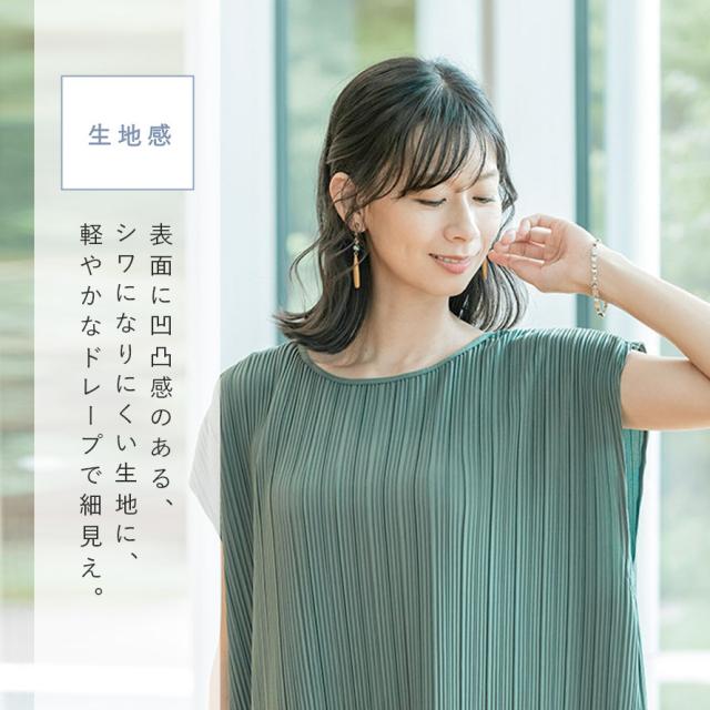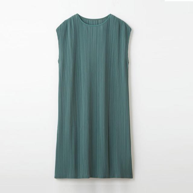 肌触りサラサラ、シワになりにくいプリーツ生地の春夏用ワンピース。