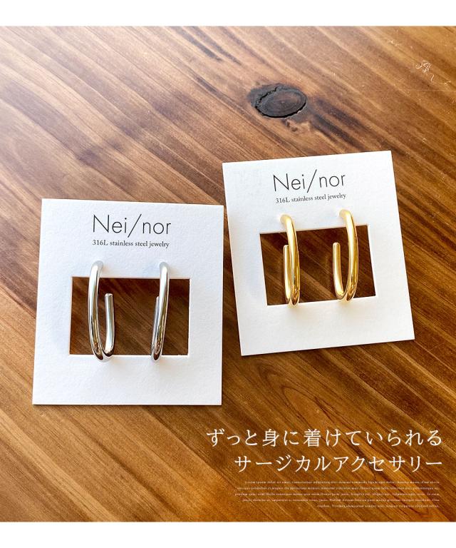 ピアス お肌に優しい つけっぱなしok サージカルステンレス 316L メンズ レディース ユニセックス 両耳用 ジェンダーレス ファッションピアス アクセサリー シルバー ゴールド PVDコーティング Nei/nor ネイナー NnP-0002