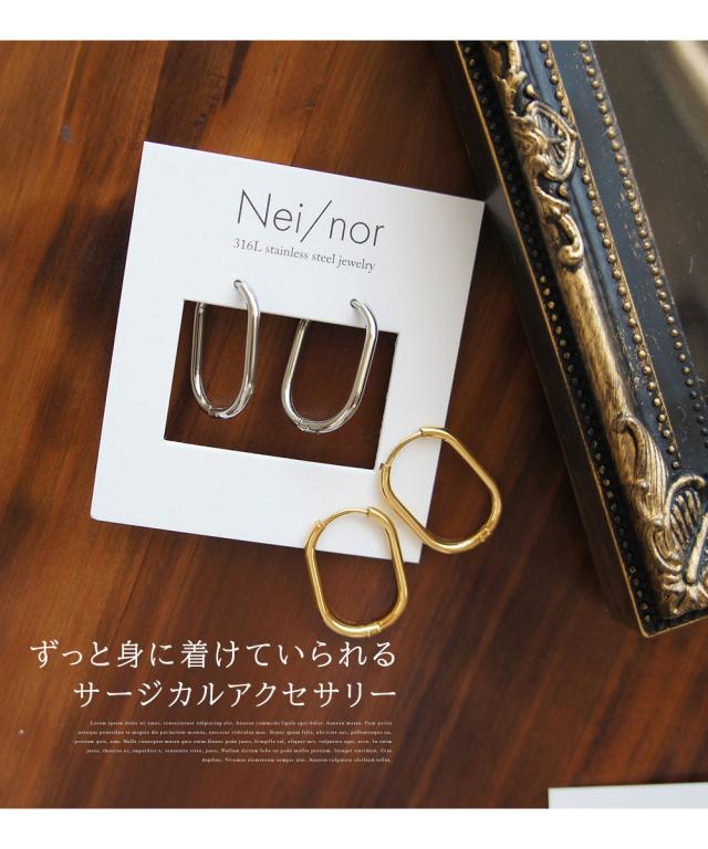 ピアス お肌に優しい つけっぱなしok サージカルステンレス 316L メンズ レディース ユニセックス 両耳用 ジェンダーレス ファッションピアス アクセサリー シルバー ゴールド PVDコーティング Nei/nor ネイナー NnP-0007