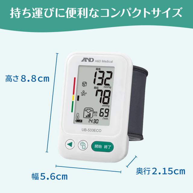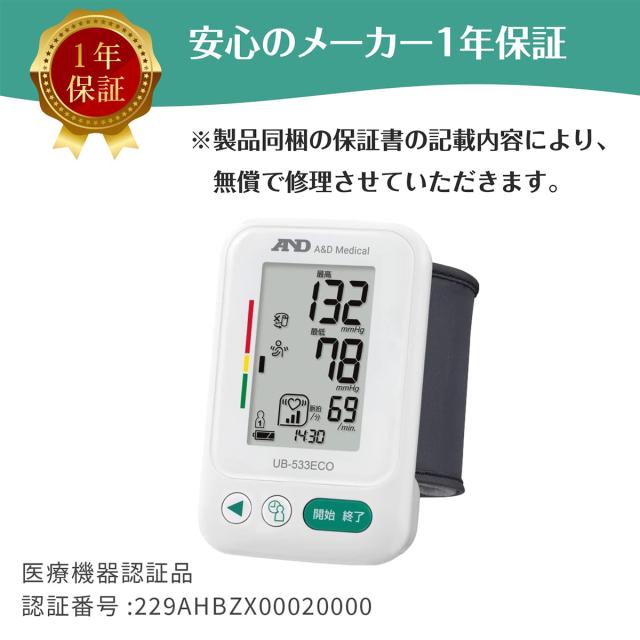 A&D エー・アンド・デイ 手首式血圧計 UB-533ECO カフのゆる巻きチェック機能付き メモリ付き 体動検出表示