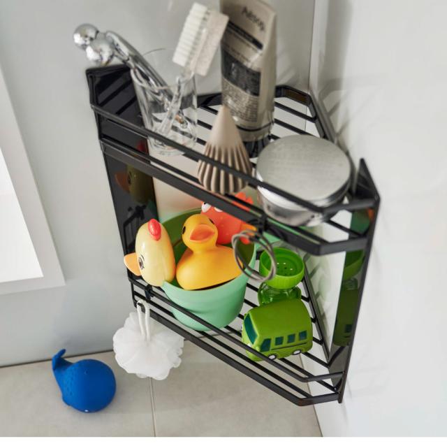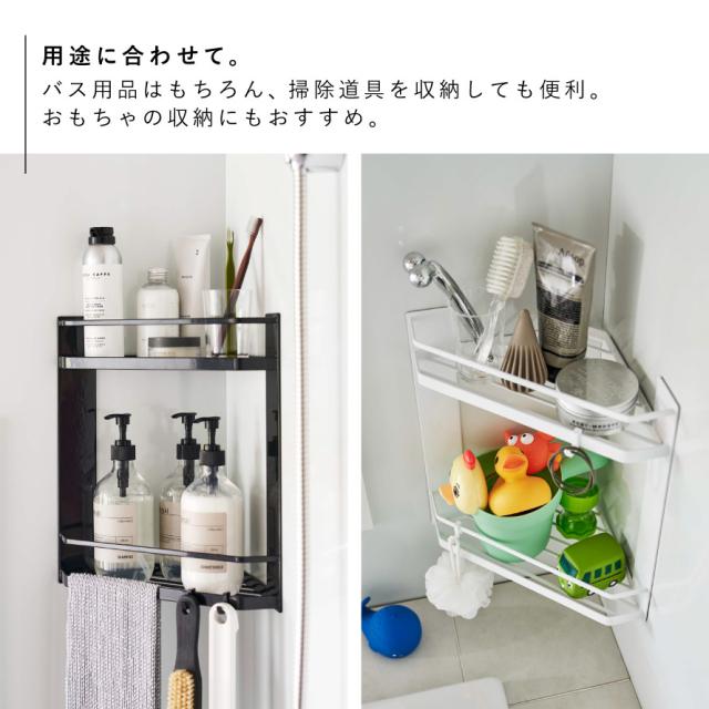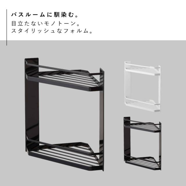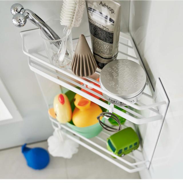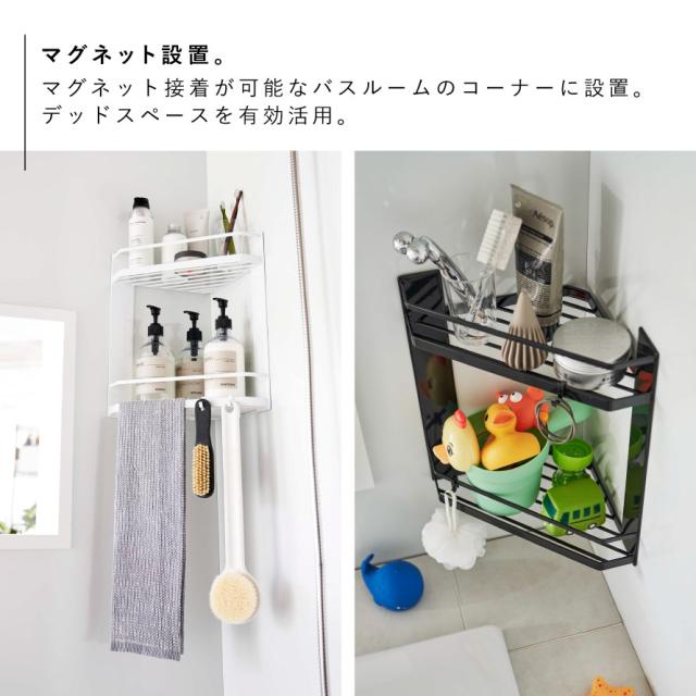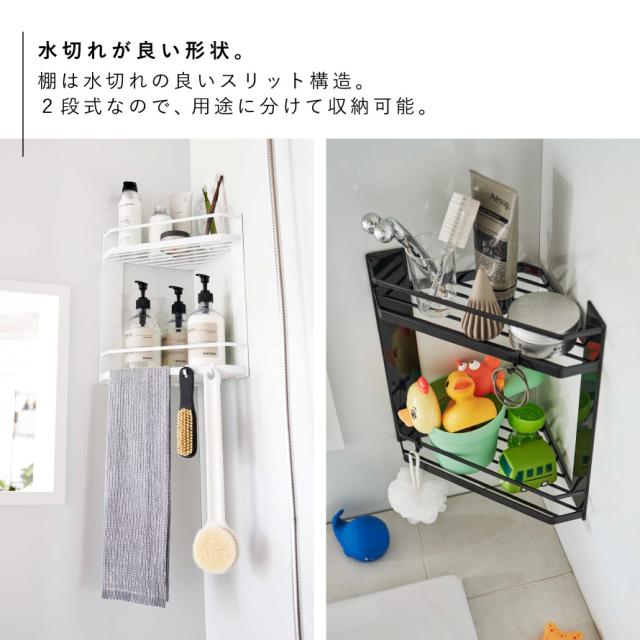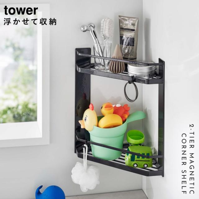 コーナーラック,棚,マグネット,磁石,角,すみ,2段,スリット,風呂,浴室,収納,シャンプー,ボディソープ,洗顔料,ボディブラシ,バスグッズ,清潔,床置き,フック,狭い場所,すっきり,たっぷり,タオル掛け,吊るす,引掛け収納,ひっかけ収納,便利グッズ,カビ防止,整頓,狭い場所,水はけ,カビ対策,ぬめり防止,片付け,有効活用,上下,水はけ,ホワイト,ブラック,白,黒,モノトーン,tower,タワー,山崎実業,おしゃれ,インテリア,新生活,マンション,デザイン,こだわりアイテム,インテリア,雑貨,一人暮らし,