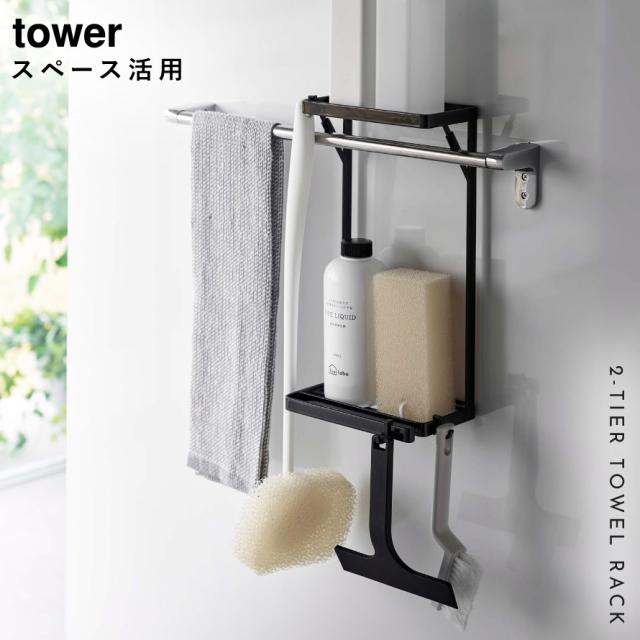 タオル掛け上ラック タワー 2段 有効活用 タオルバー 差し込むだけ tower 山崎実業 有効活用 タオル掛け上ラック タワー 2段