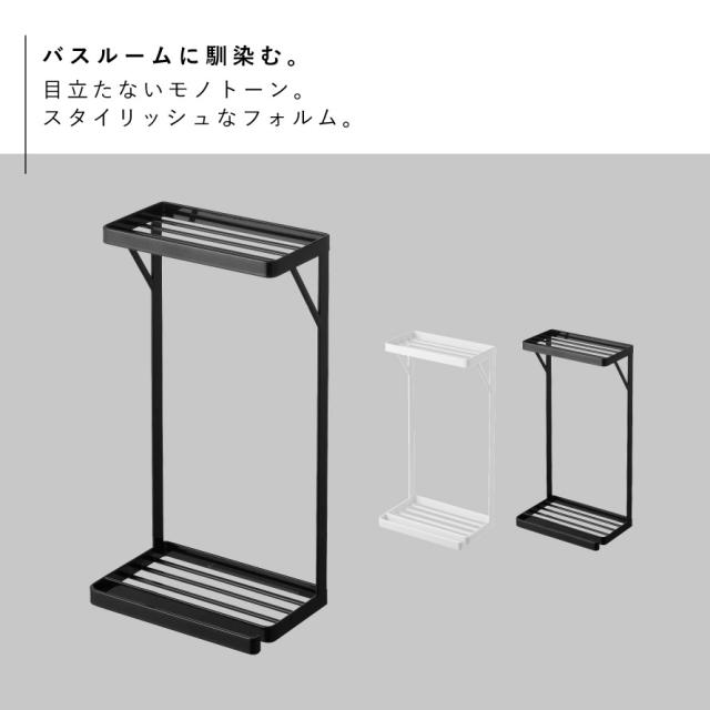 ラック,棚,2段,風呂,浴室,タオルバー,収納,シャンプー,ボディソープ,洗顔料,ボディブラシ,バスグッズ,清潔,床置き,フック,狭い場所,すっきり,たっぷり,おもちゃ収納,タオル掛け,スリム,吊るす,引掛け収納,ひっかけ収納,便利グッズ,カビ防止,整頓,狭い場所,水はけ,カビ対策,ぬめり防止,片付け,有効活用,上下,スリム,スリット,水はけ,ホワイト,ブラック,白,黒,モノトーン,tower,タワー,山崎実業,おしゃれ,インテリア,新生活,マンション,デザイン,こだわりアイテム,インテリア,雑貨,一人暮らし,