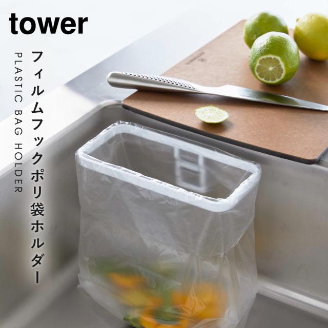 野菜くず 生ゴミ 片付け ポリ袋ホルダー tower 山崎実業 ホワイト ブラック フィルムフック ポリ袋ホルダー タワー