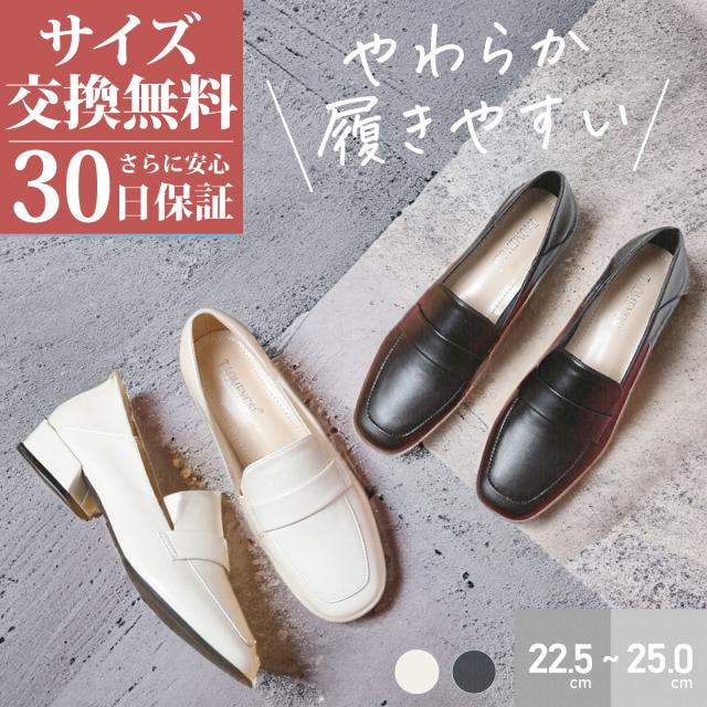 ローファー パンプス レディース 歩きやすい 学生 女子 黒 ブラック 靴 厚底ローファー 大きいサイズ ヒール チャンキーヒール スクエアトゥ