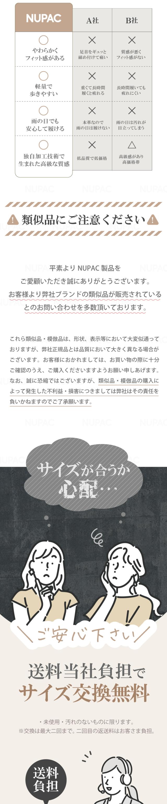 雨の日でも履ける撥水素材を採用し、汚れがつきにくく1日中快適におしゃれを楽しめます。