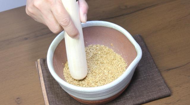 どっしりとした重量感のあるすり鉢ですので、片手でも楽にすることができます。