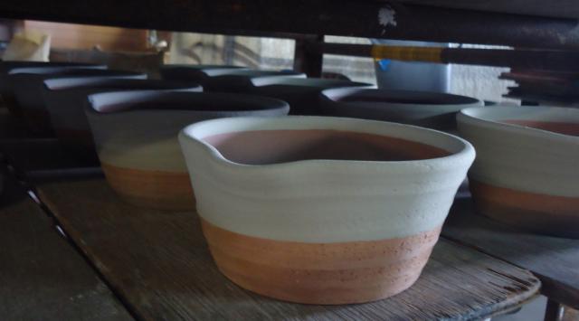 3)半乾きの時に内側に施釉