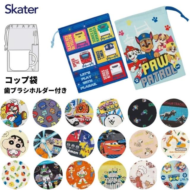 スケーター コップ袋 日本製 KB62 メール便対応 子供 マチ付き巾着 巾着袋 歯ブラシホルダー付コップ袋 給食袋 入学 入園 コップ入れ 歯ブラシ入れ 男の子 女の子
