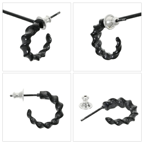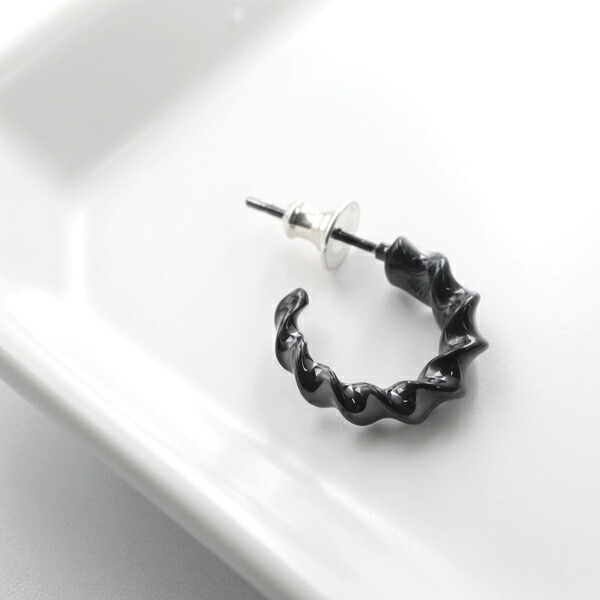 ブラックコーティングが施されたインパラホーンのフープピアス、緩やかな曲線がブランドらしいアイテム。