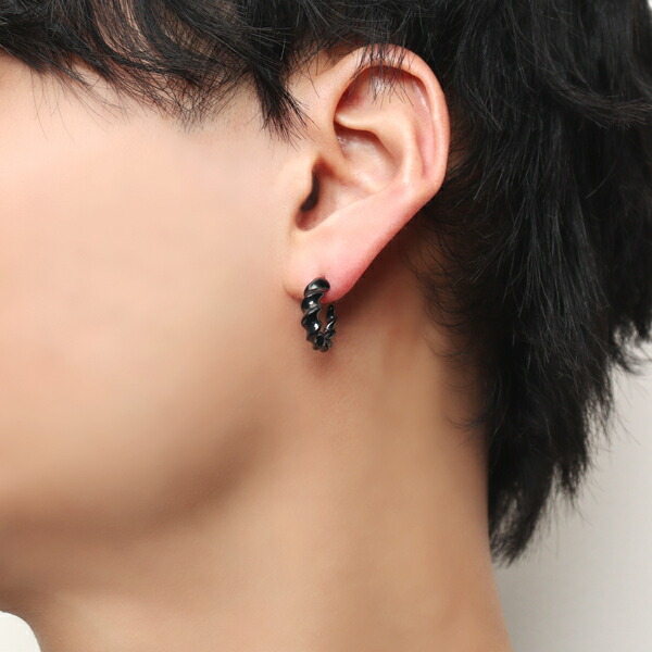 PUERTA DEL SOL 17mm インパラホーン ブラック フープピアス 1P 片耳用 ピアス シルバーアクセサリー シルバー950 チタンコーティング チタンポスト