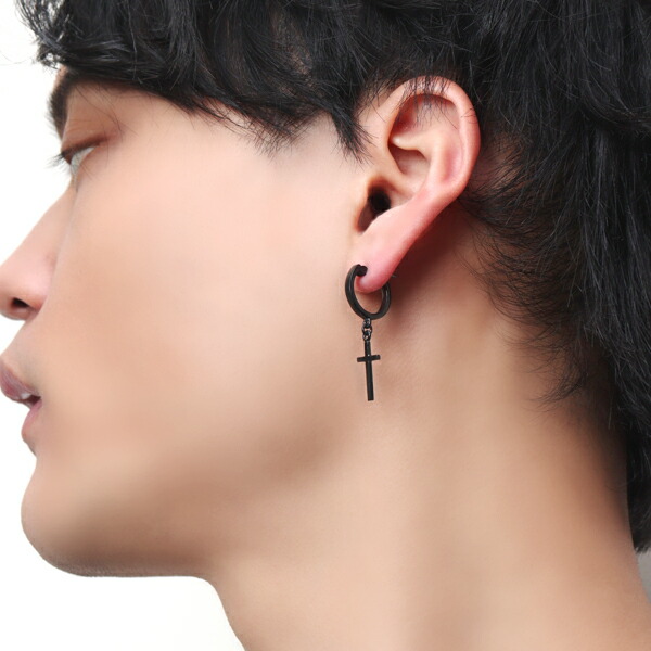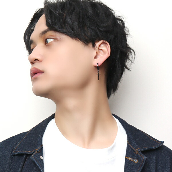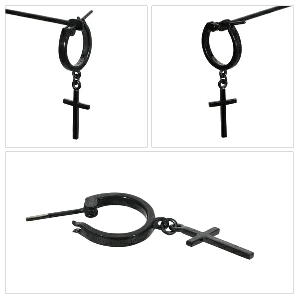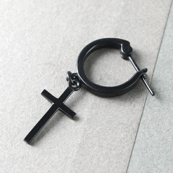 PUERTA DEL SOL 揺れる クロス ブラック フープピアス 1P 片耳用 ピアス シルバーアクセサリー シルバー950 チタンコーティング チタン 黒 十字架