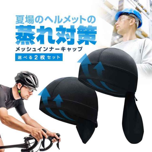 バンダナ風 メッシュインナーキャップ 選べる2枚セット 男女兼用 海賊風バンダナキャップ ヘルメットの下に 現場仕事/登山 KZPC57S2