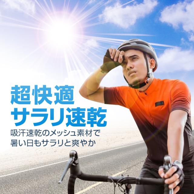 伸縮があり通気性の高い吸汗速乾メッシュ生地を使用しているので、暑い日もサラリと爽やか。