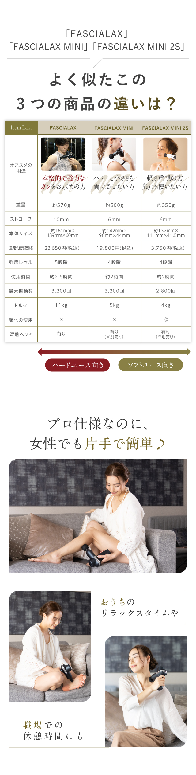 プロも納得のスペックなのに、女性でも片手で使えてリラックスにピッタリです。