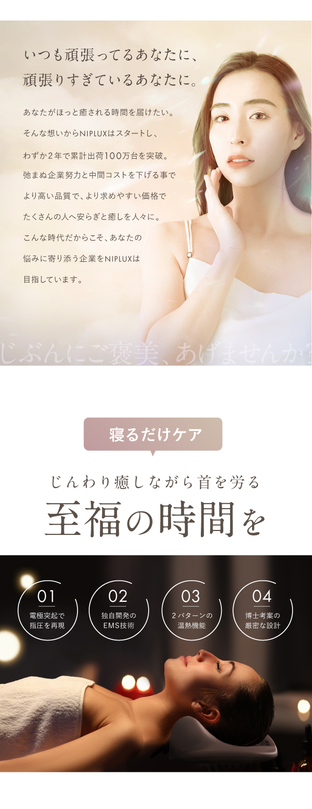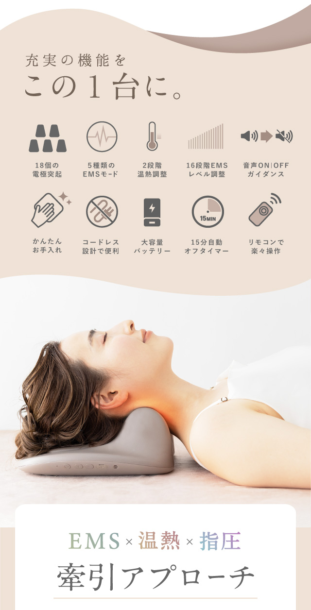 業界初!寝ながら首ストレッチ EMS首枕 NIPLUX NECK PREMS ネックプレミス ネックストレッチャー ストレッチ マッサージ器 マッサージャー ストレートネック スマホ首 牽引 首 肩 猫背 実用的 ツボ押しグッズ 温熱 枕 まくら 指圧 背中 肩甲骨 プレゼント ギフト