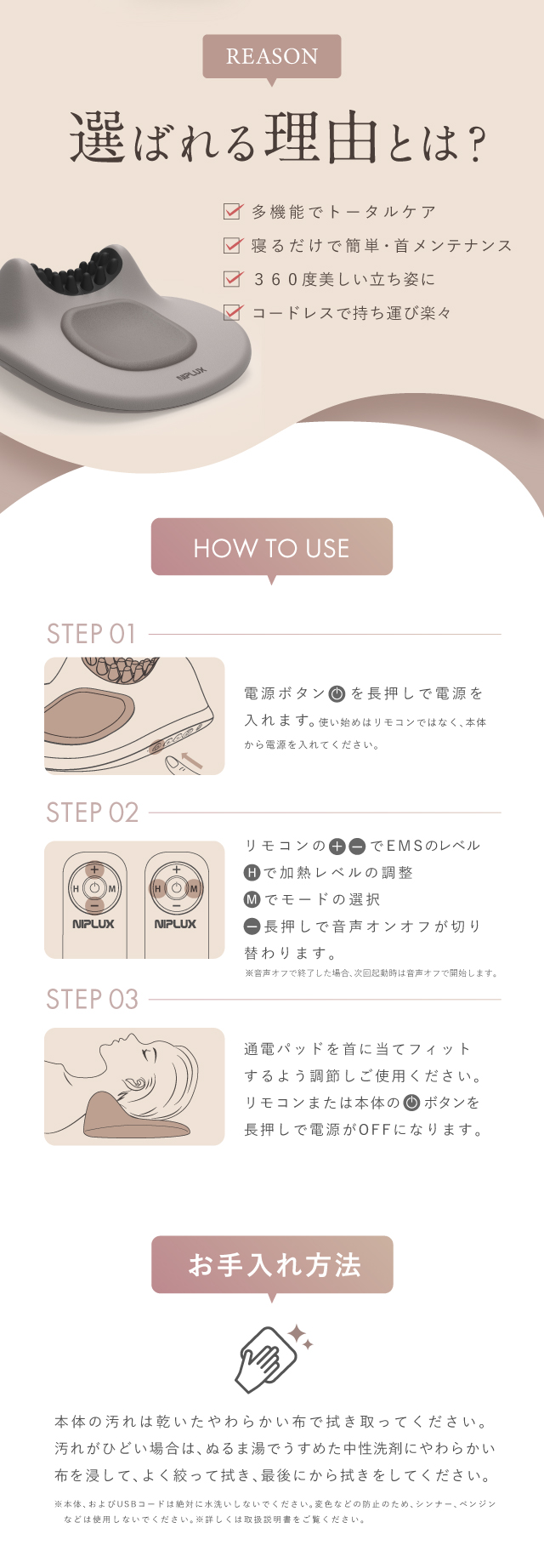 検索関連ワード(本商品の説明ではありません):マッサージ器 マッサージ機 小型 軽量 温熱 EMS 首枕 ストレッチ ストレッチャー ストレッチ ネックピロー 頸椎 首枕 ネックストレッチャー 首を伸ばす器具 健康器具 健康グッズ NIPLUX EMS HEAD SPA ニップラックス イーエムエスヘッドスパ EMSヘッドスパ