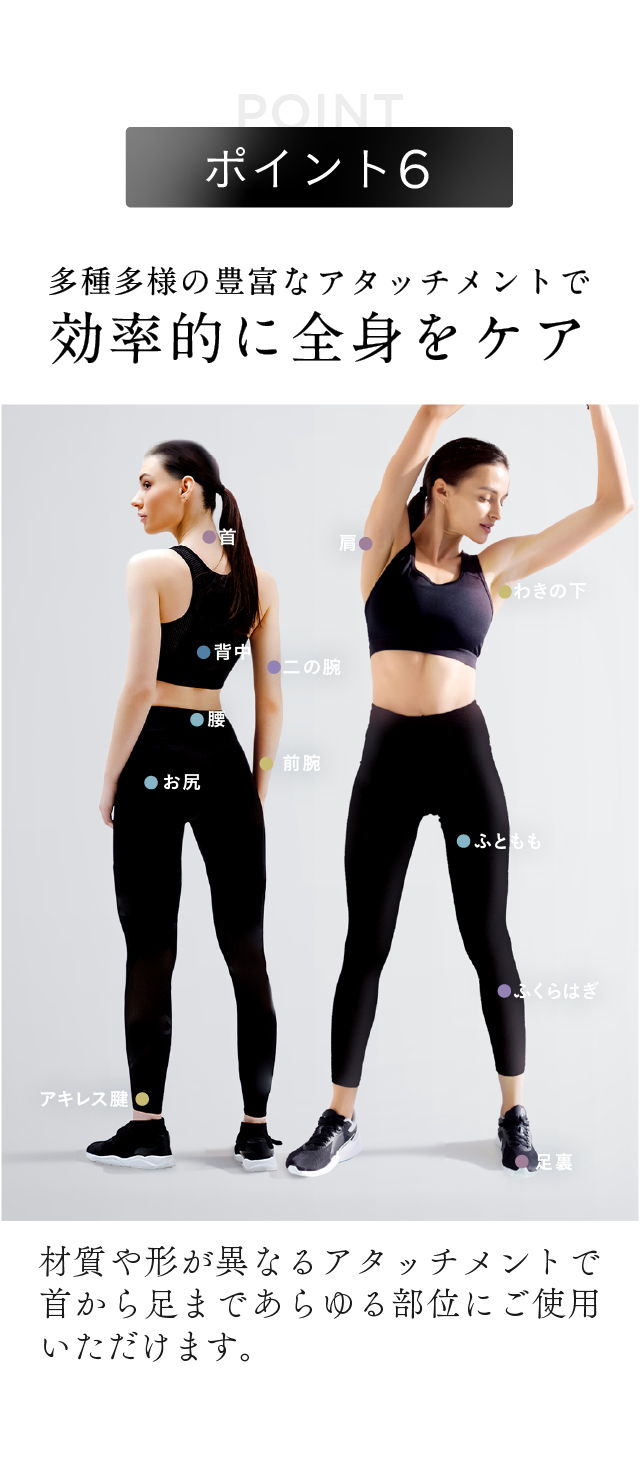 | セット内容 | 本体×1 USB充電コード×1 アタッチメント×5(バンド含む) バンド用付替パッド×7 取扱説明書兼保証書×1 収納ケース×1 |