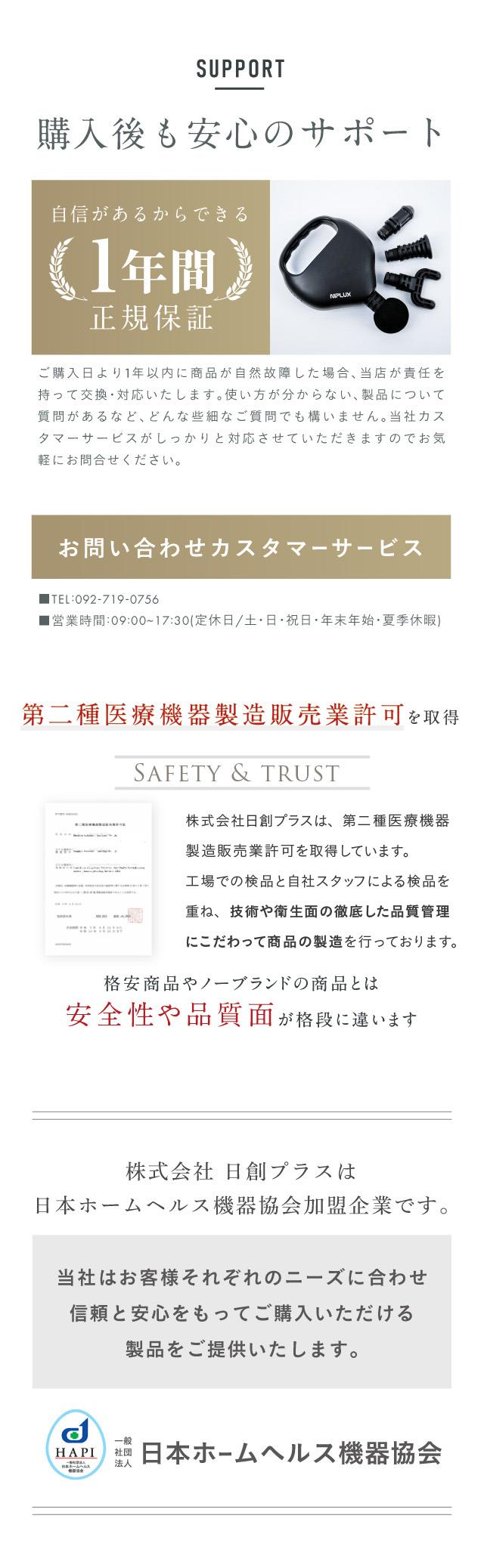 | 保証期間 | お買い上げ日より1年間 |