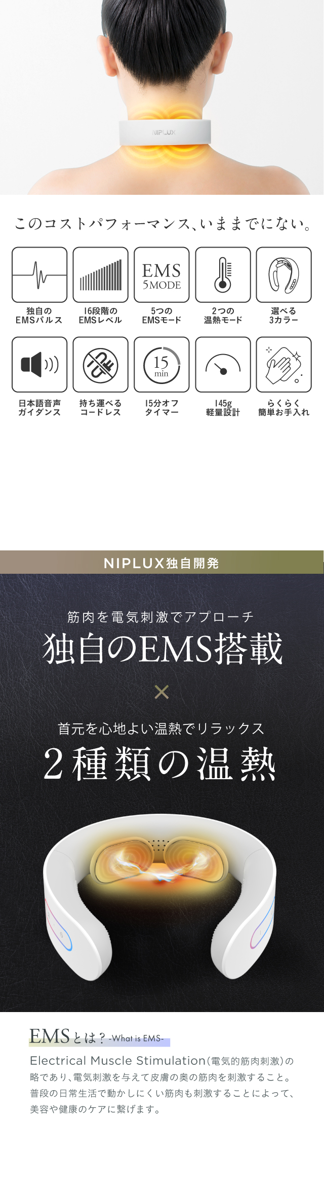 検索関連ワード(本商品の説明ではありません): 母の日 プレゼント 実用的 父の日 花以外 軽量 ネックリラックス ニップラックス NIPLUX マッサージ器 ネックマッサージャー 首マッサージ器 低周波 小型 マッサージ機 プレゼント 女性 ネックマッサージャー 温熱 EMS マッサージャー 肩もみ 健康器具 電気肩たたき 電気マッサージ器 電気マッサージ機 全身 電気針 リモコン ネックマッサージャー 温熱 ems 口コミ 男性 女性 電動 便利な家電 効果 ランキング オススメ 20代 30代 40代 50代 60代 70代 80代 首マッサージャー 肩たたき機 背中マッサージ 有吉ゼミ ハンディマッサージャー 肩甲骨 遠赤外線 最新 コードレス 充電式 充電器ケーブル 首を温める 筋肉 リラックス 首温めグッズ リラックス リフレッシュ ギルト ストレッチ ケア 脚 背中 腰 ハンディタイプ リモコン 筋肉 おすすめ 人気 誕生日 お祝い 還暦 2021年 2022年 ネックピロー マッサージガン NIPLUX EMS HEAD SPA ニップラックス イーエムエスヘッドスパ EMSヘッドスパ