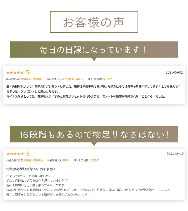 - 購入して2日後に来てびっくりしました。 首の凝りが治ってくれると良いです。