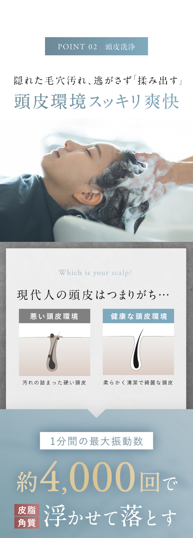 頭皮を気持ちよくリフレッシュしながら、健やかな頭皮環境へと導きます。