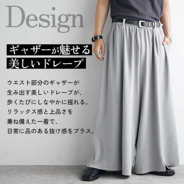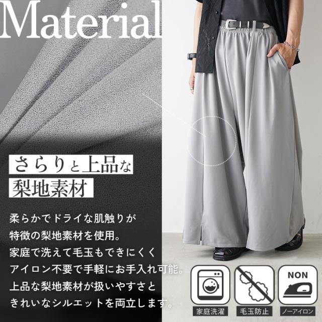袴のようなシルエットと軽やかな生地感で、動くたびにしなやかなドレープが生まれるワイドパンツ。