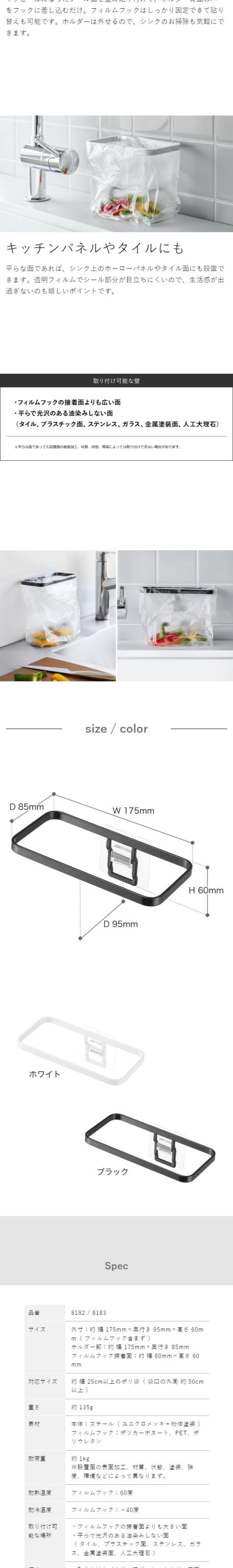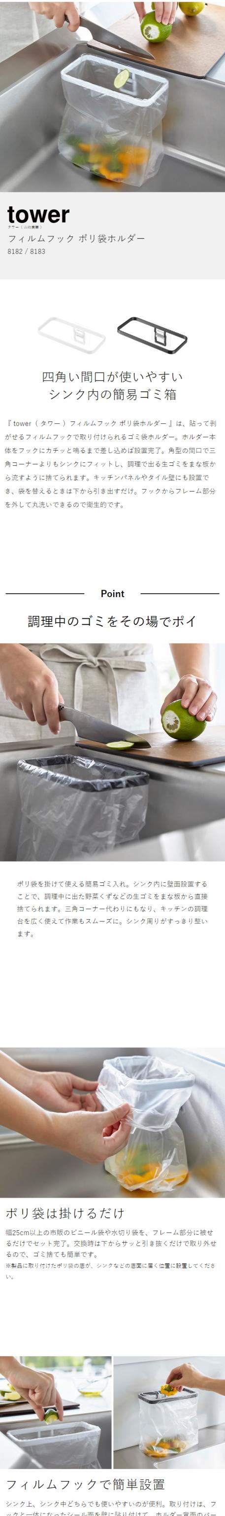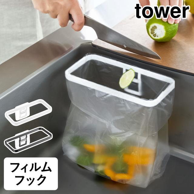 [ フィルムフック ポリ袋ホルダー タワー ]山崎実業 tower ゴミ箱 キッチン ダストボックス ごみ箱 シンク ポリ袋 ゴミ袋ホルダー 生ゴミ 三角コーナー 台所 ゴミ袋 ゴミ入れ シンプル おしゃれ yamazaki タワーシリーズ ブラック ホワイト 8182 8183