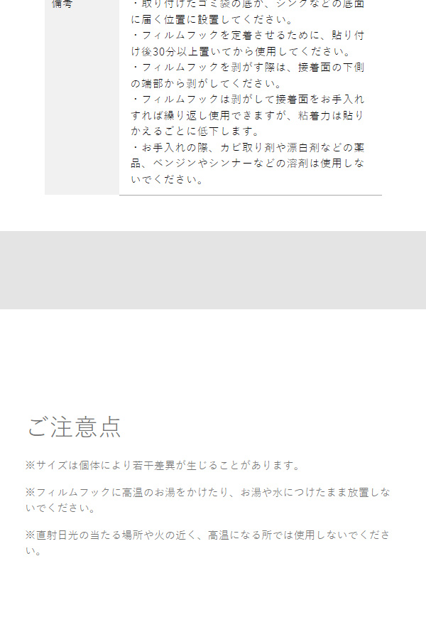 ポリ袋を掛けて使える簡易ゴミ箱。貼って剥がせるフィルムフックでキッチンのシンク内に設置できるので、調理で出る生ごみをまな板から直接捨てられます。キッチンパネルにも設置OK。