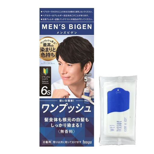 白髪染め 男性用 【医薬部外品】 ホーユー メンズビゲン ワンプッシュ 白髪染め 6S(ナチュラルシャドウ) (1剤40G+2剤40G)+おまけ付 1個 (X 1)