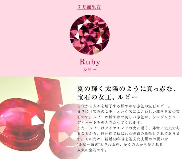 石:ルビー 1石 3mm×4mm(約0.09ct) ダイヤモンド 2石 計0.02ct