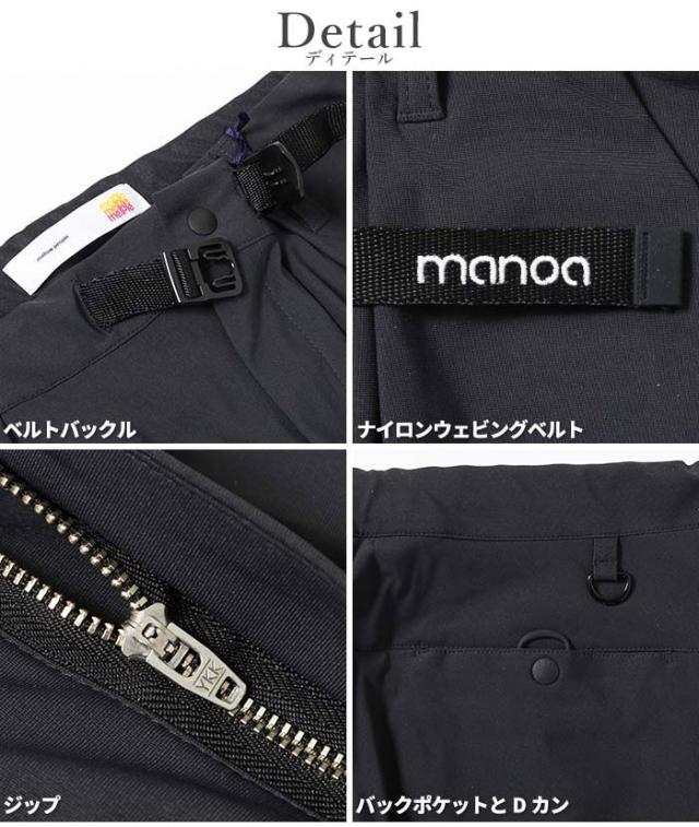 "病みつきパンツ"として絶大な支持を得てきたTomcatPantsをよりアクティブに穿いて頂くためにUPデートした1本。 さらりとした肌触り、超ストレッチ、UVカット、吸水速乾を誇るTomcatナイロンはその機能性からゴルフやサイクリングをはじめとしたアクティブシーンでの着用をされる方も増えている。 そんな方々からのニーズを組んだ『Manoa(マノア)』はハワイ語で「広大」を意味します。 ヒップやワタリにはゆとりを持たせ膝から裾にかけては綺麗なテイパードを掛けている。 レングスを定番の1タックリラックスパンツより6cm相当伸ばし、股下には大きく取ったガセットを配しており、足の開閉はよりスムーズで様々なアクティブな動きに対応します。 ウエストにはナイロンウェビングベルトを採用してサイズ調整も容易にした。 さり気なく入れたmanoaの刺繍もアクセントになっている。 またインタック(内向きのタック)により、上品さも兼ね備えた万能パンツ。 バックポケットはヨークを活かしたスリットポケットで右側にはラバープル付きのスナップ釦を採用して貴重品などの収納に適してる。 ポケット袋布はポリエステル製に変更して速乾性を向上させている。 右バックポケット上にはDカン付き。 |