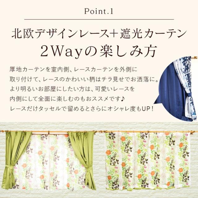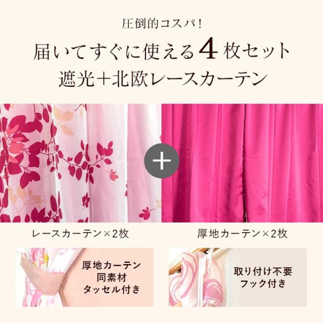 カーテン 4枚セット 遮光カーテン 4枚組 デザインレース 柄レース カーテン 安い カーテン 北欧 レース かわいい カーテン レース カーテン 遮光 100幅 丈135cm/178cm/200cm 洗える カーテンセット (KYU) 引っ越し 新生活