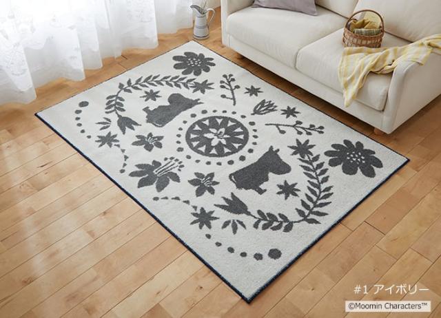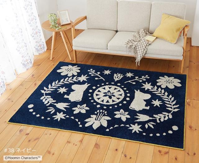 北欧 デザイン ラグ マット キャラクター 日本製 約130×185cm ムーミン フォークラインラグ (S) 防ダニ 床暖房対応 遊び毛防止 引っ越し 新生活