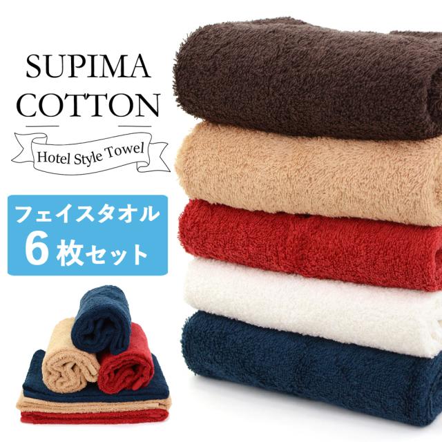 フェイスタオル スーピマ タオル 6枚セット 5色 スーピマコットン 厚手 高品質 カラータオル (it-4395-3P)【沖縄県除き送料無料】 セット タオルセット スーピマ 吸水 綿100% まとめ買い ホテルタイプ 高級ホテル仕様 ホテルタオル 選べる3色セット agesugi_snk