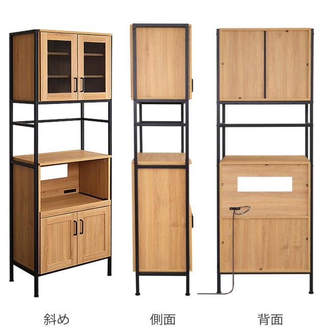 食器棚 幅64cm レンジラック ヴィンテージ調 ( キッチン 収納 ラック 食器 棚 レンジ台 電子レンジ 家電収納 台所収納 省スペース ヴィンテージ 可動棚 コンセント付 おしゃれ )